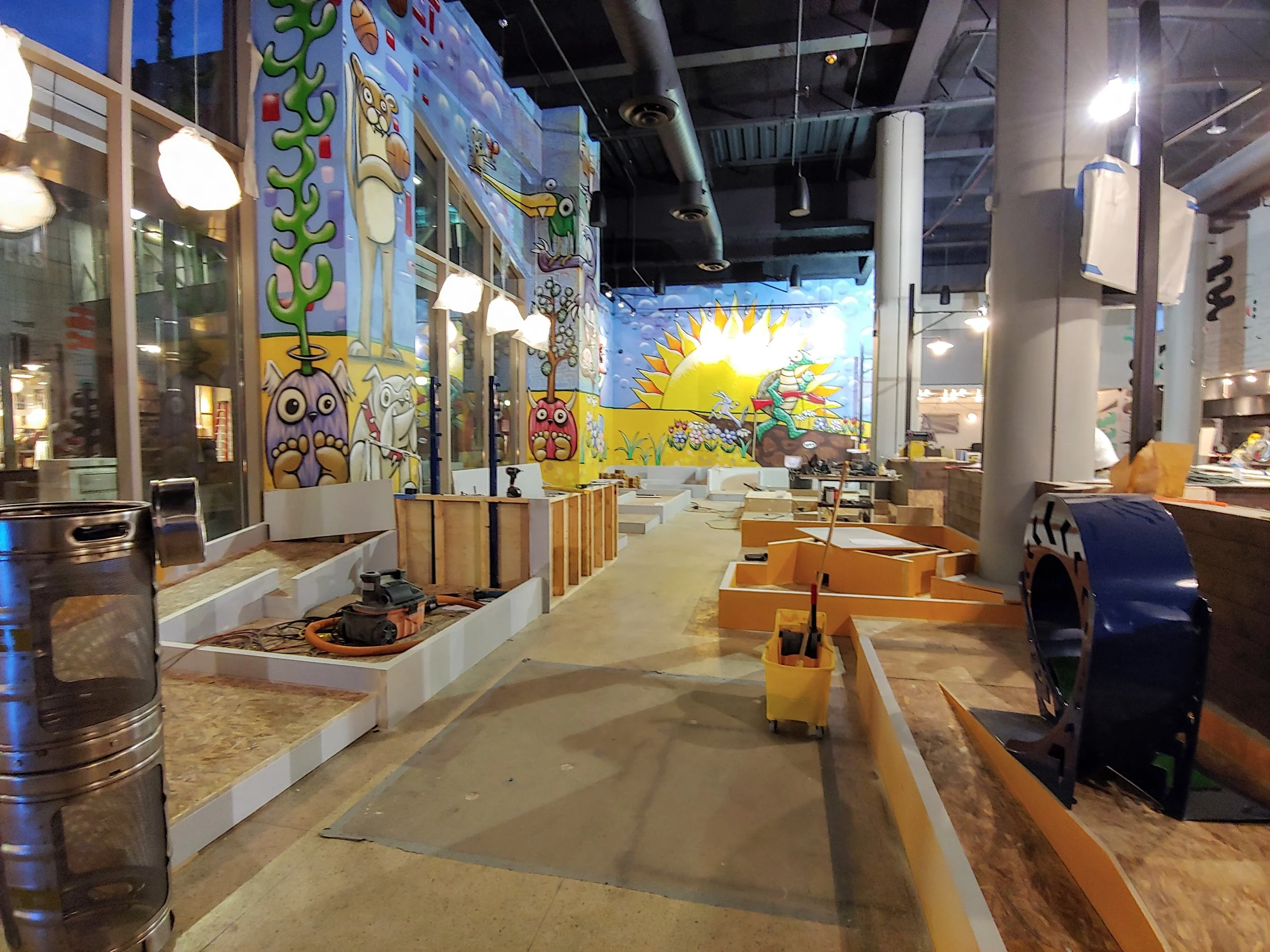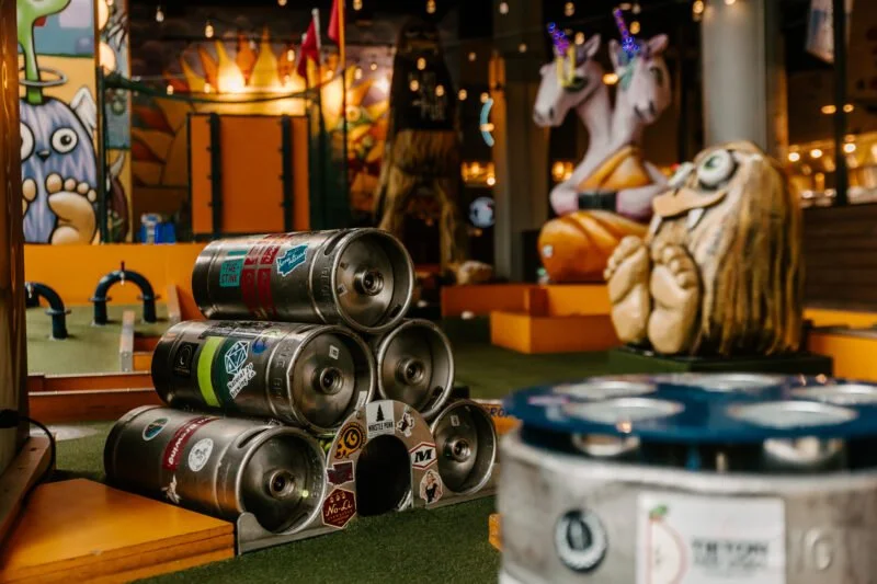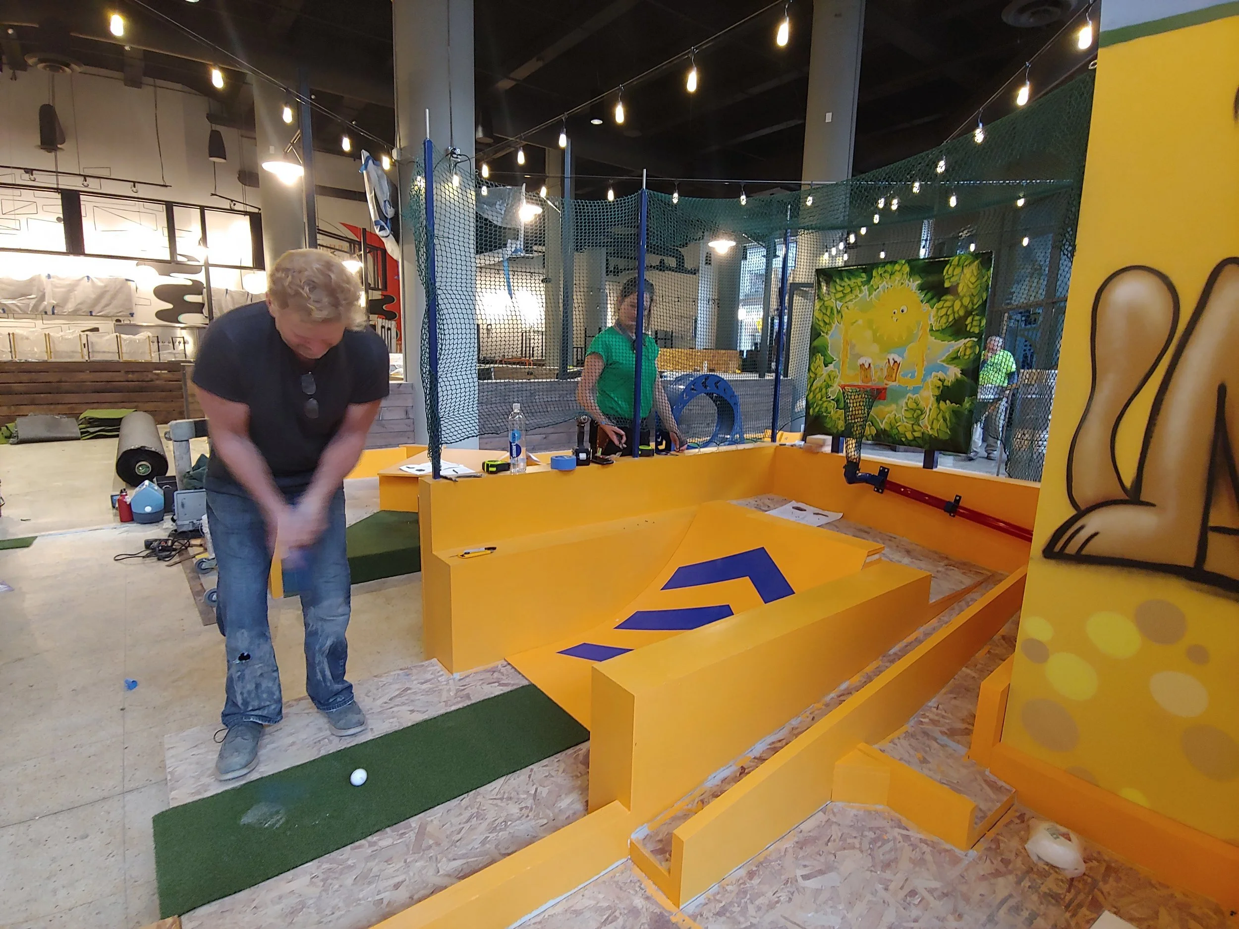 Flatstick Pub opened its new putt putt golf pub location in Spokane Washington in 2019. As Project Manager, Technical Designer, and gizmo prototyper I helped to bring this playful family experience to life. I coordinated the onsite and offsite in-house constructions teams to build the course and attached gizmos. Troubleshooting and prototyping the kinetic elements of each hole made this putt putt course stand out from the rest. Each hole was designed to include local elements bringing joy, pride, and delight to every player.