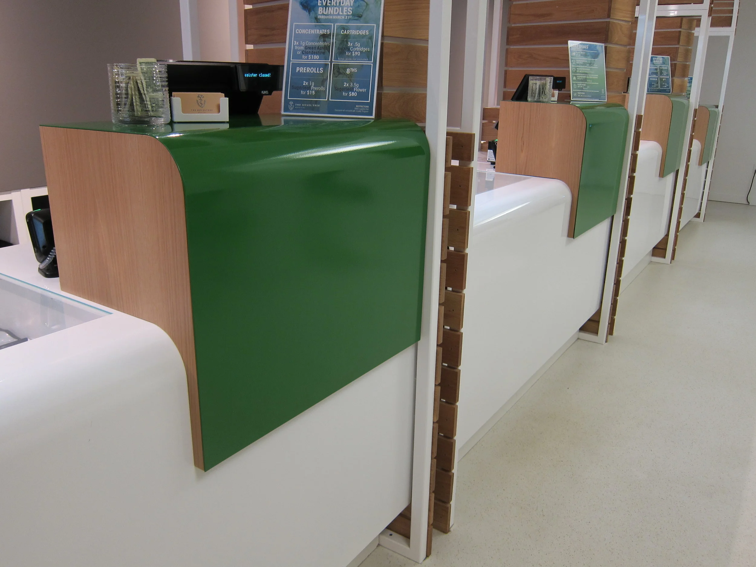 Novel Tree launched their medicinal dispensary store in Bellevue Washington with the intent to expand their brand nation wide. The ask was to design a signature Novel Tree retail space with custom POS stations, a check-in counter, and private consultation room for their new location. The design intent was to consider accessibility with height adjustable retail counters with swivel display boxes and create a retail kit of parts for expanding their stores across the states.